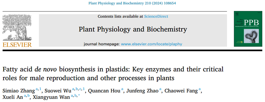 Plant Physiology and Biochemistry | 植物质体中脂肪酸从头合成途径的关键酶及其在雄性生殖和其它生理过程中的作用
